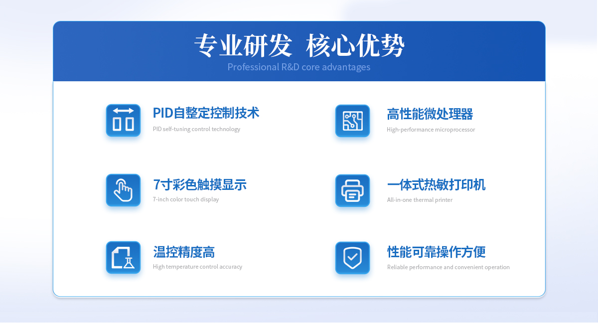 | ★显示器:5寸彩色触摸显示器 | ★打印机:一体式热敏打印机 | ★控温范围:0-100℃ | ★控制精度:±0.05 ℃ | ★加热功率:1800W | ★加冷却介质:水或乙醇 | ★冷浴孔数:2孔 | ★电 源:AC220V±10% | ★频 率:50Hz±2.5Hz |