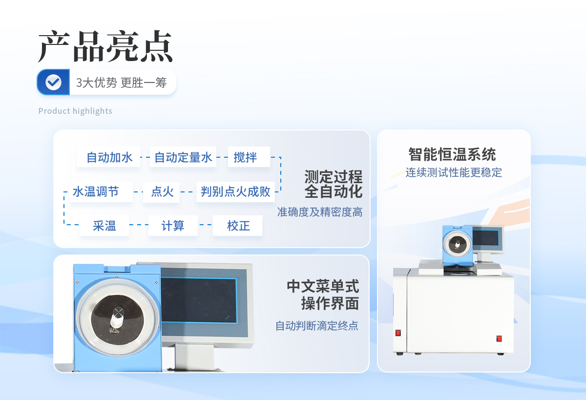 自动立式量热仪,用于测定煤炭、焦炭、矸石等固体可燃物的发热量指标,适用于电力、煤炭、冶金、石化、质检等行业。