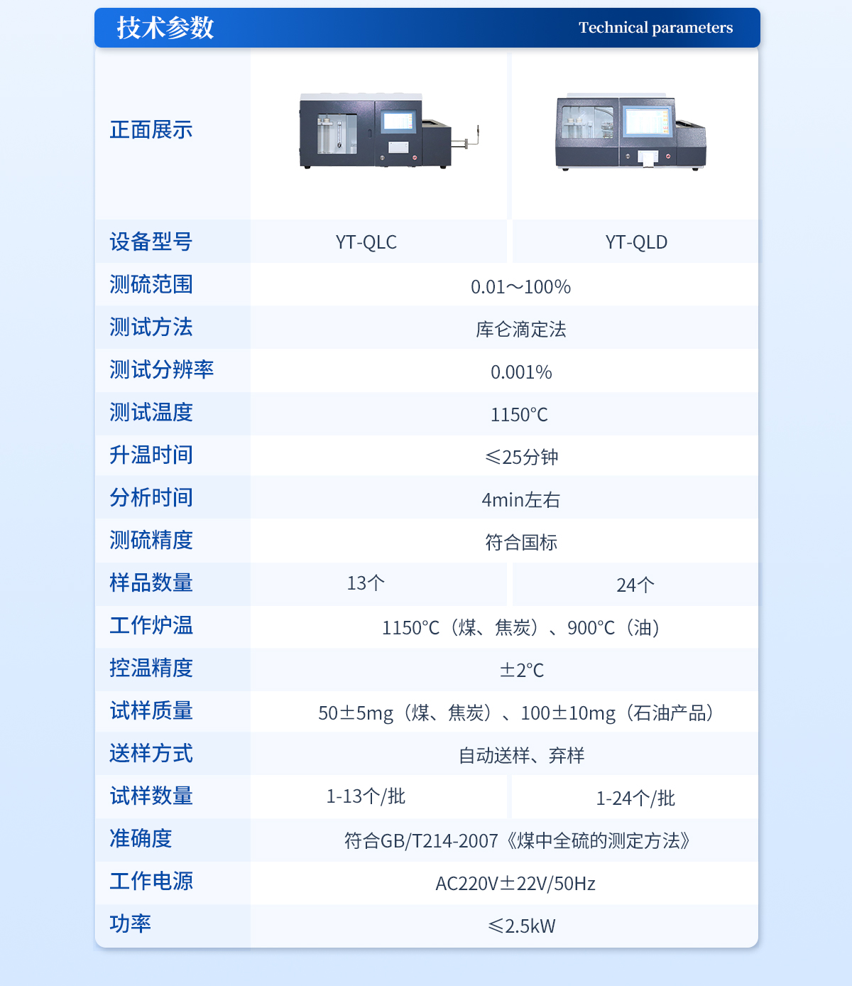 1.系统主要用于测量煤、焦炭、石油等可燃物质的硫的含量。 | 2.整个测试过程由微机控制自动完成。 | 3.误差可以通过实验自动修正。 | 4.测试结果永久保存,可查阅、打印。 | 5.温度自动补偿,测温误差5%。 | 6.具有硅碳管开机自动保护和过流保护等功能。 | 7.样品数量:1—15个/次(可随时连续加样)。 | 8.电源:AC(220±22)V,50HZ. 功率:≤3KW。 | 9.可多台微机共享数据结果。 |