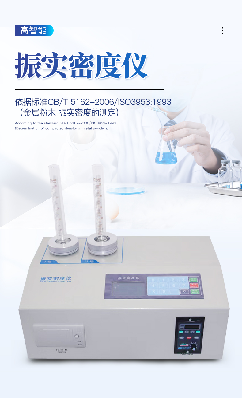 | 试样重量:≤500.00克; | 试样体积:≤250.00毫升; | 单次振动次数:0~99999次(当设定为0次时结果输出为"松装密度"); | 电机允许力矩:0.86 N.m; | 振动频率: 0~300转/分钟(连续可调); | 液晶显示屏(输出样品信息); | 微膜按键(操作方便) | 两个工作位可以同时使用 | 振动幅度:3mm,(可调) | ZS2高精度振实密度仪是专门针对固体粉体密度的测量仪器,按照国家标准GB/T 5162-2006/ISO3953:1993,参照美国药典标准研发制造。广泛应用于工业、电池材料、药品材料、奶制品、磨料、造纸、水泥、涂料、科研机构、大中专院校以及各种金属和非金属行业。 |